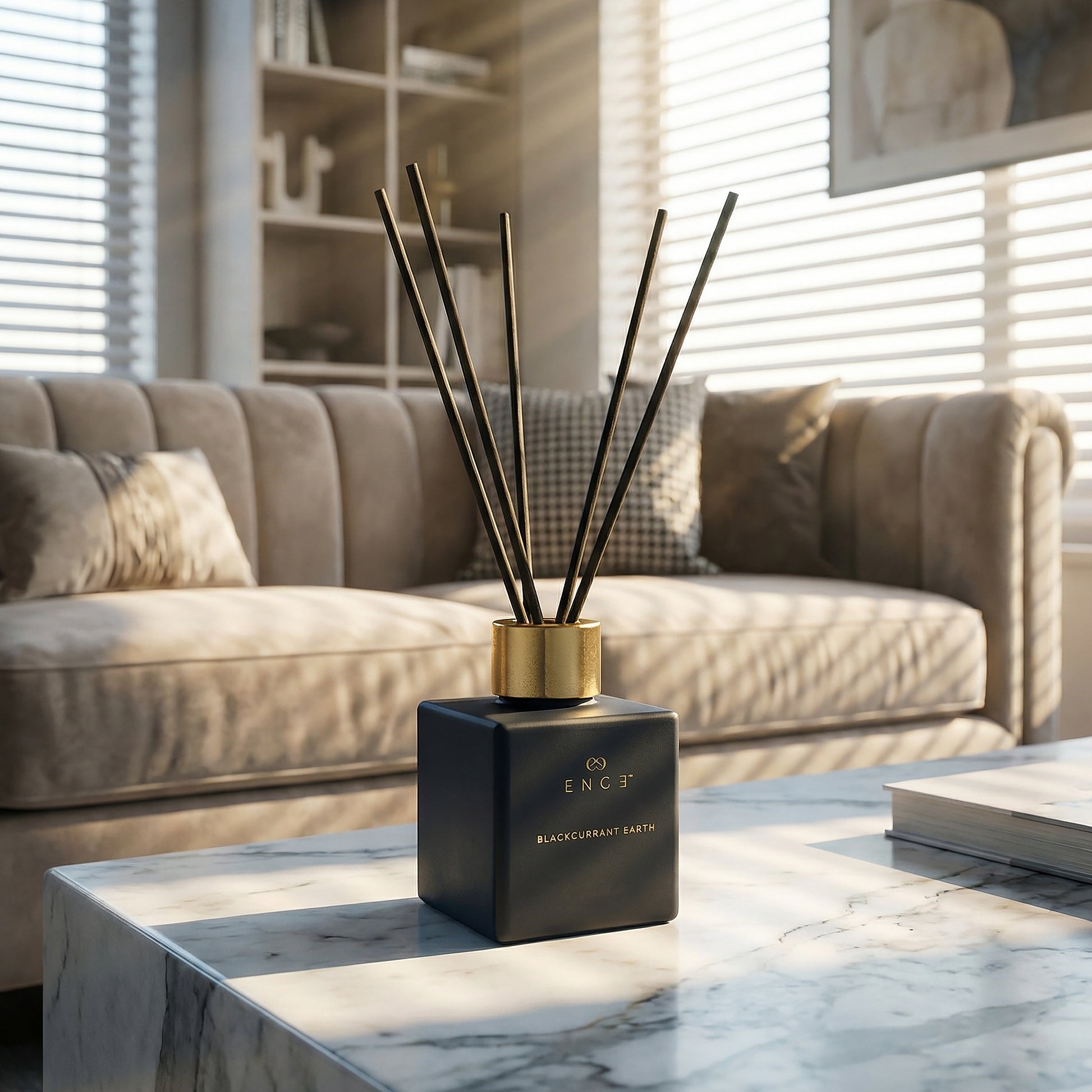 On first use, insert all reeds and allow 24 hours for the fragrance oil to travel fully up the sticks. Flip the reeds weekly to refresh the scent — more frequent flipping increases intensity; less frequent flipping extends the life of the oil. Avoid placing near open windows, air conditioning vents, or in direct sunlight, as this accelerates evaporation. Keep away from polished surfaces, as the oil may cause discolouration. Top up with ENCE refill oil when fragrance begins to fade.